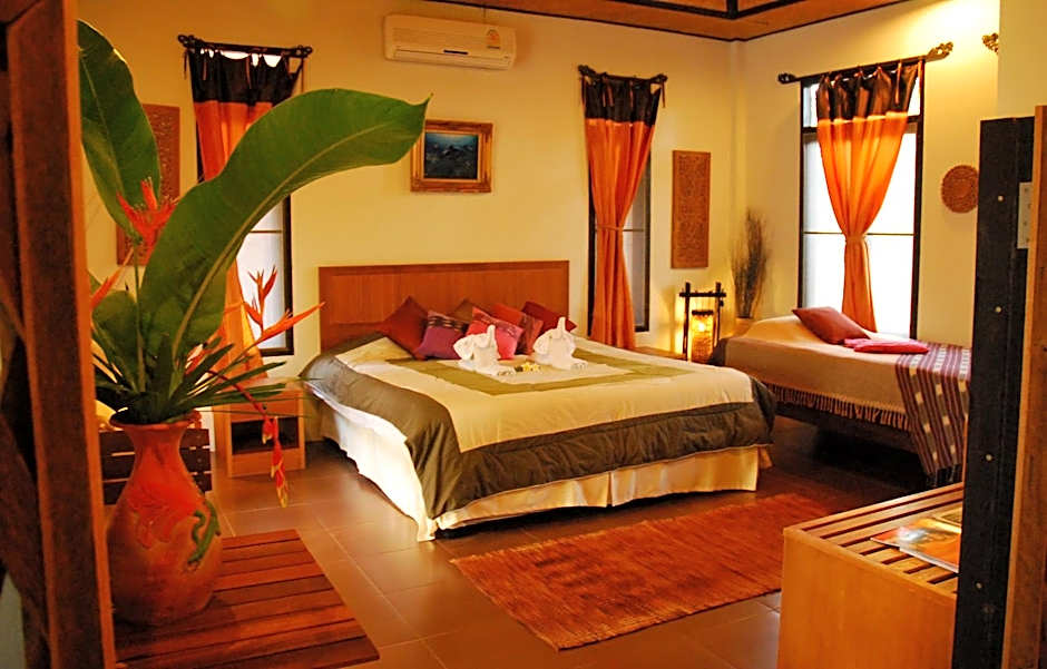 Larger air-conditioned room features a balcony with garden view, a cable/satellite TV and a refrigerator. A hairdryer and slippers are provided.